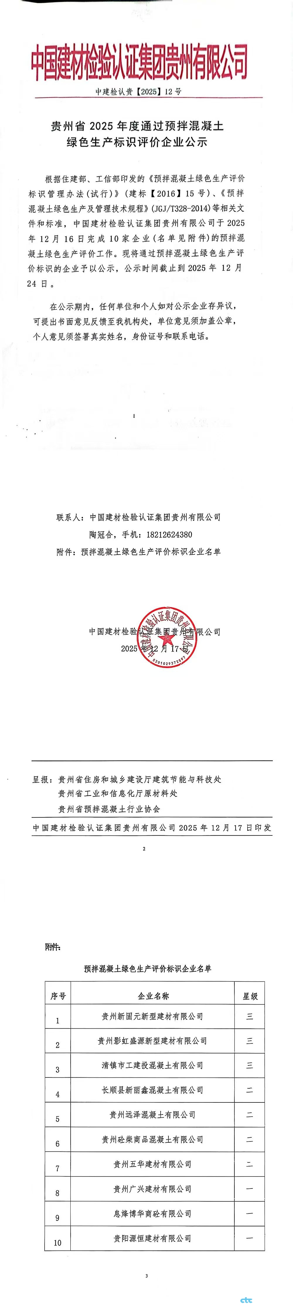 貴州省2025年度通過預拌混凝土綠色生產(chǎn)標識評價企業(yè)公示