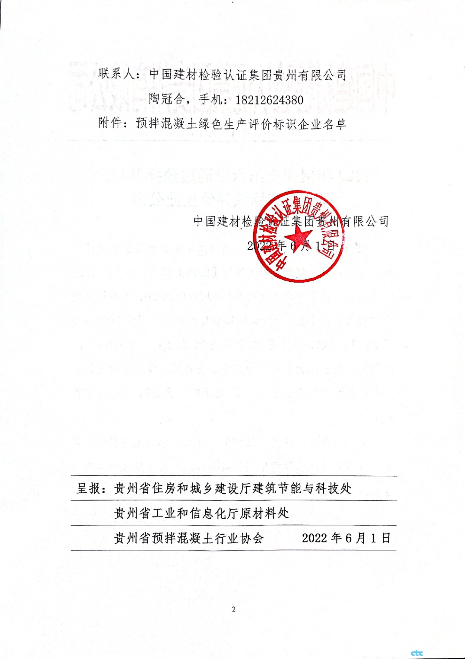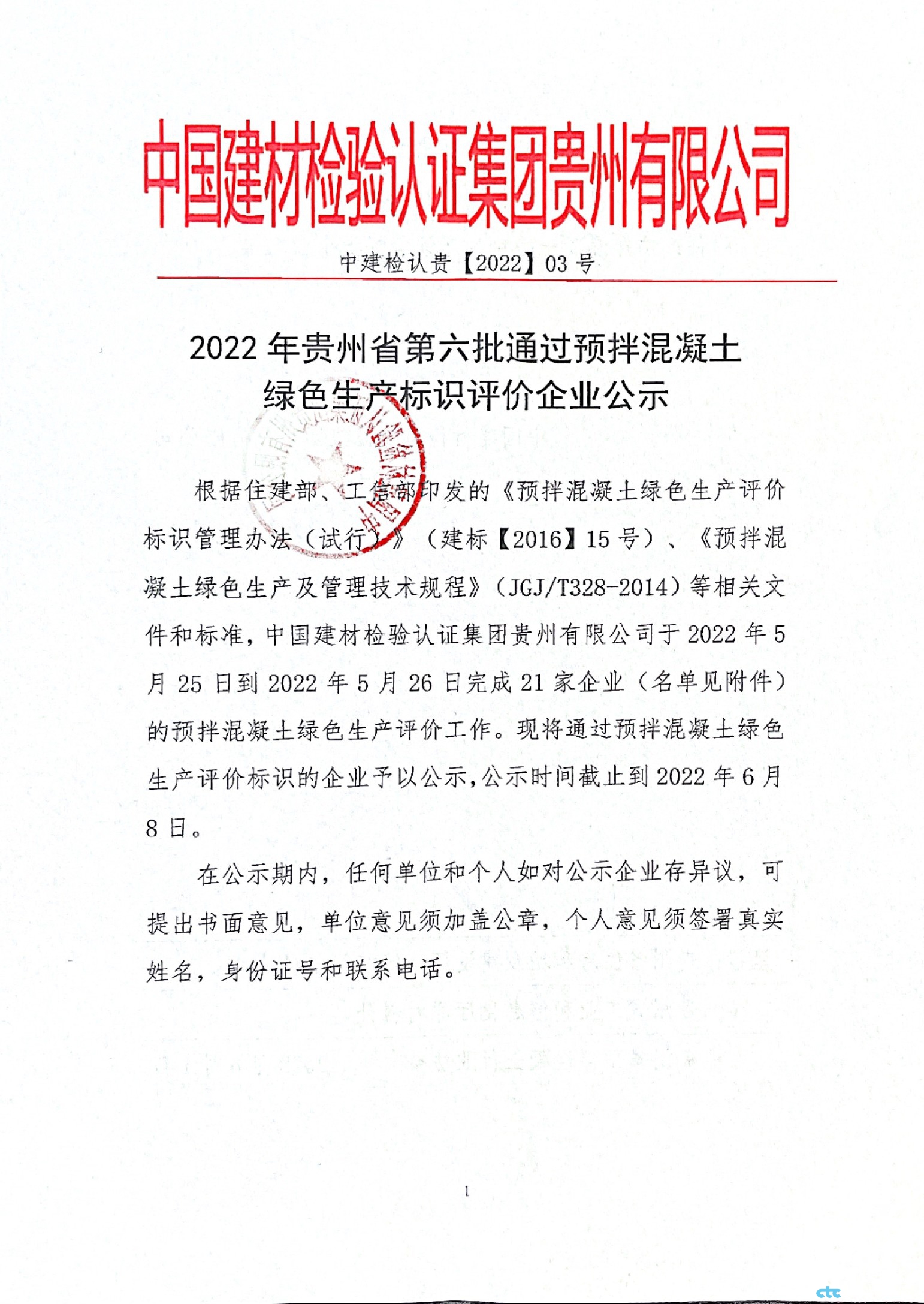 2022年貴州省第六批通過預(yù)拌混凝土綠色生產(chǎn)標(biāo)識評價企業(yè)公示